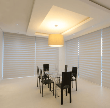 Conforme o movimento do comando na persiana é possível escolher a preferência de deixar aparente apenas as faixas mais opacas de tecido, ou então aparecendo a parte das telas transparentes, permitindo assim diversas opções de controle de luz e privacidade.