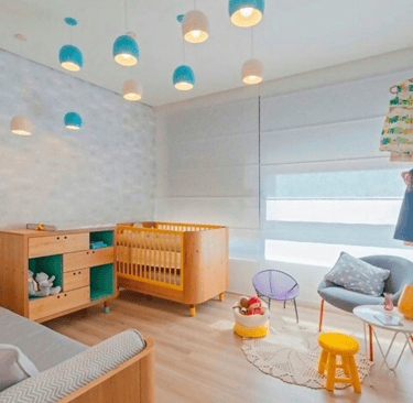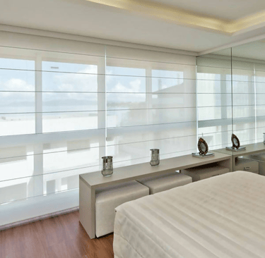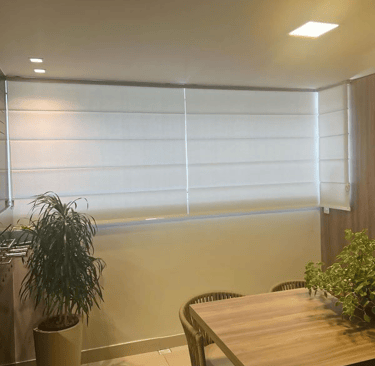 A persiana romana da Luz & Trama é formada por “gomos” largos e horizontais que se dobram e desdobram para cima ou para baixo na medida em que a persiana é aberta ou fechada. O espaço entre as dobras da persiana romana é o que torna esse modelo tão diferenciado, transmitindo leveza e elegância aos ambientes.